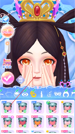 3、全风格彩妆自由创作,涵盖日常裸妆、古风彩妆、童话妆容等多元风格,从眉笔、眼影到口红、腮红,每款彩妆道具都支持细节调整,适配不同仙子气质打造专属造型。