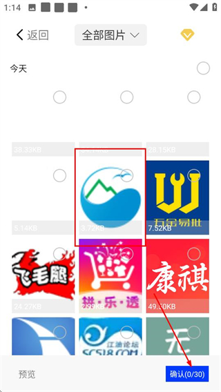 2、在图片选择页面,选中目标图片后点击确认按钮,可进入添加文字编辑页面。