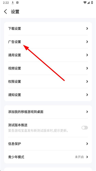 3、在设置页面中,找到并点击广告设置选项,进入广告相关的配置页面。