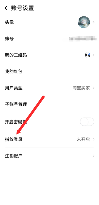 3、在账号设置页面,点击指纹登录选项,进入指纹登录设置界面。