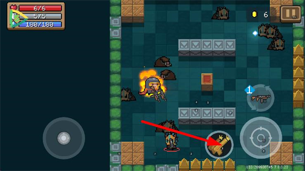 1、进入元气骑士,通过左侧摇杆控制角色移动。