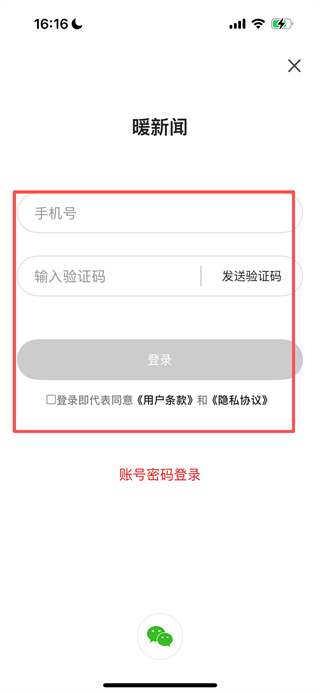3、在登录页面,填写信息并勾选协议后,点击登录按钮即可完成账号登录。
