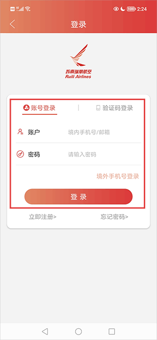 2、在登录界面选择账号登录,输入账号信息完成登录操作。