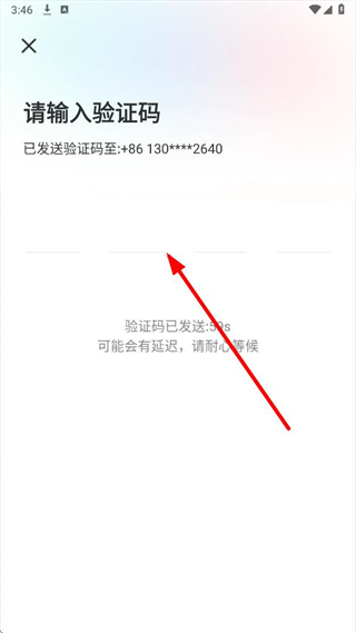 3、在登录注册界面,输入手机号码后点击获取验证码按钮,获取验证短信。