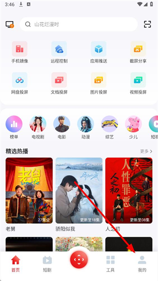 1、在多屏互动app,点击底部导航栏我的选项,进入个人中心页面。