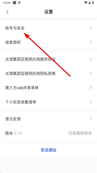 3、在设置页面,点击账号与安全选项,进入账号与安全页面。