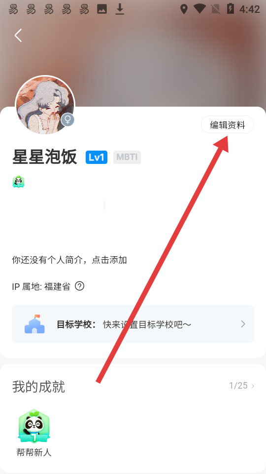 1、打开作业帮进入我的主页,点击头像旁边的编辑资料选项。