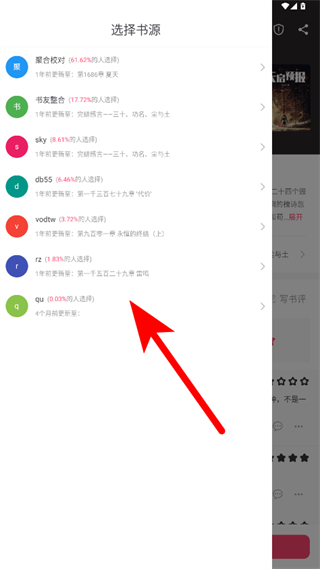 3、在选择书源页面选择合适书源,进入阅读页面。