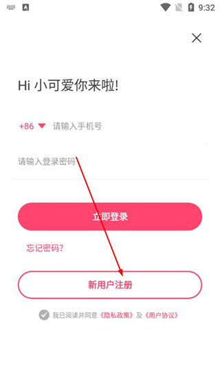 3、在登录注册界面,选择新用户注册选项,进入注册信息填写页面。
