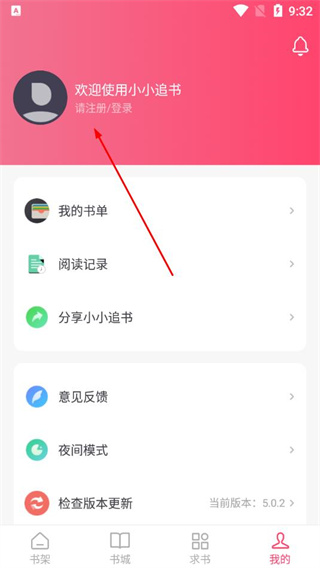 1、打开小小追书APP,点击底部我的选项,进入个人中心页面。