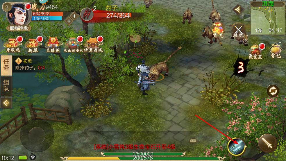 4、接取任务后,在游戏场景中找到目标怪物豹子,点击界面的攻击按钮,开展击杀豹子的任务操作。