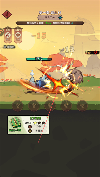 4、持续选择和装备不同的功法秘籍,不断提升角色属性,应对更强的怪物,顺利通过第一章·漫山村的各小关卡。