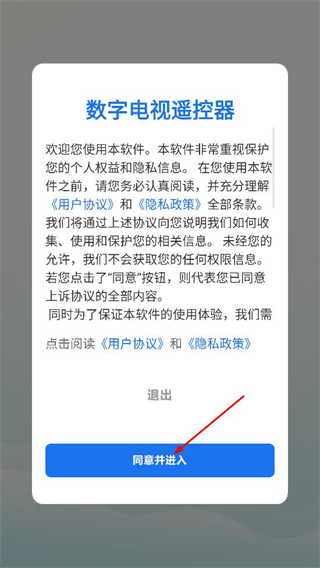 1、阅读用户协议和隐私政策后,点击同意并进入按钮,进入遥控器主界面。