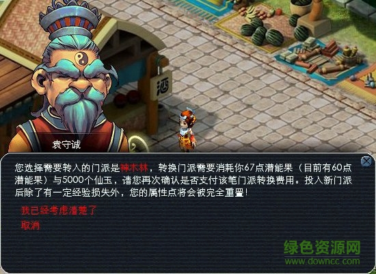 3、对门派、需要消耗的潜能果和仙玉进行确认。