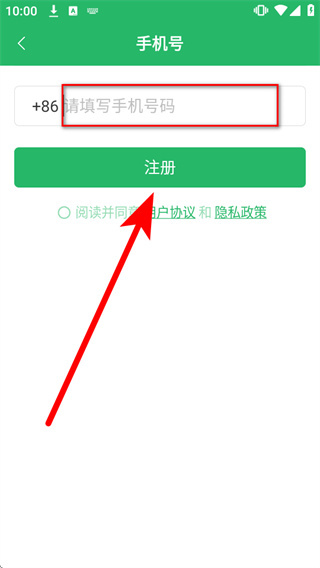 3、在手机号码框中填写手机号码,点击注册,触发短信验证码发送。