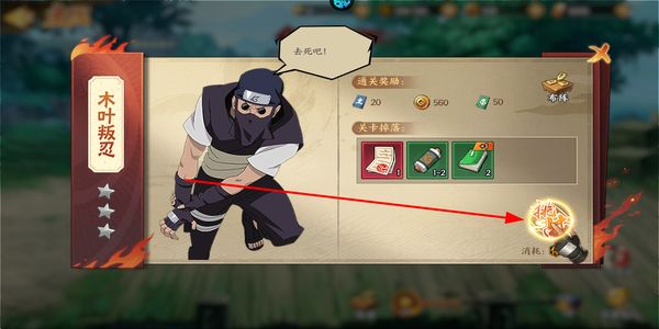 2、玩家在查看关卡的通关奖励与掉落物品,确认后点击挑战按钮,消耗对应道具即可进入该关卡的战斗环节。