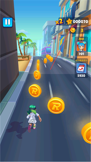 4、动感音效与视觉效果深度融合,节奏明快的背景音乐搭配角色奔跑、障碍碰撞的真实音效,营造出沉浸式的街头跑酷氛围,增强游玩代入感。