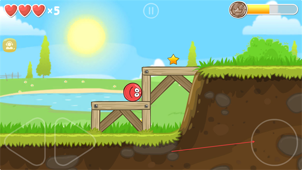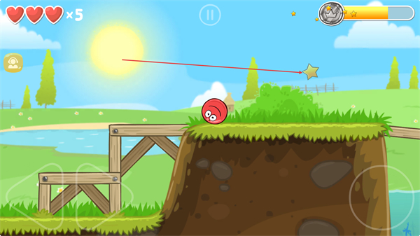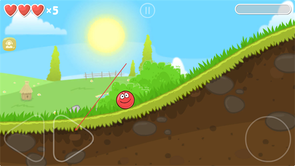 1、操控红色豆豆沿草地滚动,避开悬崖区域,向关卡前方推进。