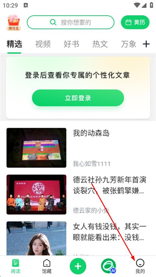 1、在个人图书馆首页,点击右下角我的选项,进入登录页面。