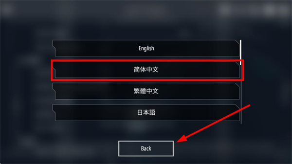 4、在语言列表里选择简体中文,点击Back按钮保存设置,完成界面语言的切换。