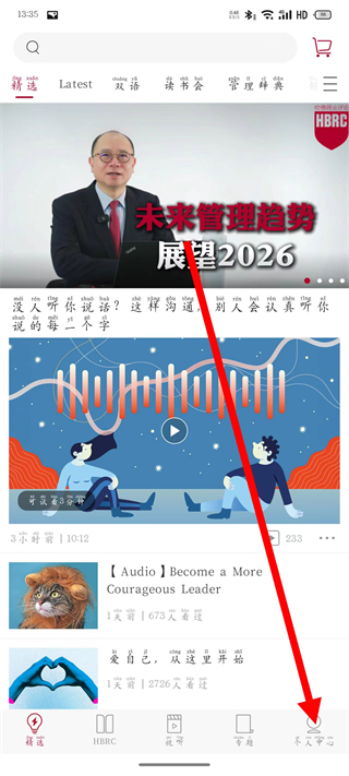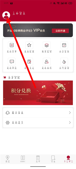 1、在哈佛商业评论首页页面,点击底部个人中心,进入个人页面。