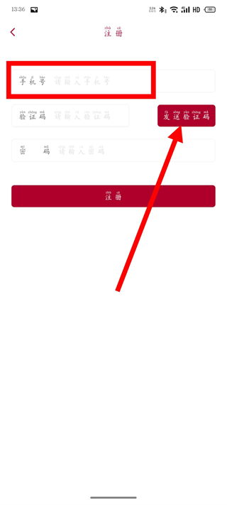 5、在输入框输入验证码,设置密码,点击注册,完成账号注册。