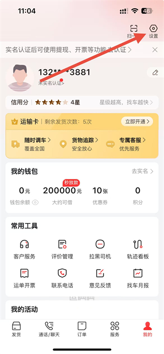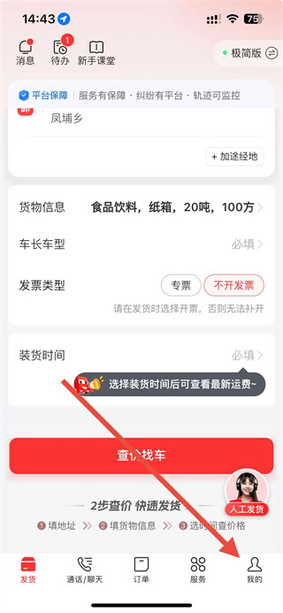 1、打开运满满货主版,点击底部导航栏的我的选项,进入个人中心页面。