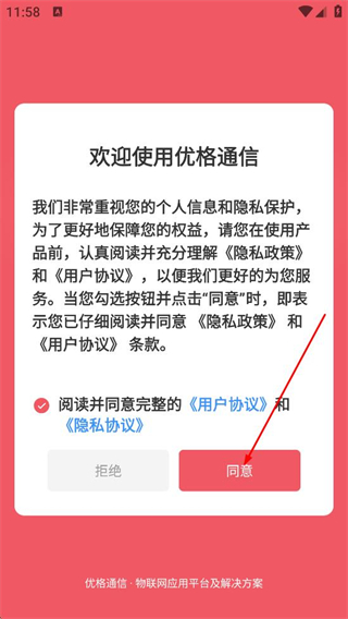 1、阅读并同意用户协议和隐私协议后,点击同意,进入登录页面。
