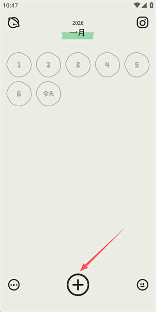 1、在日历页面点击底部的加号按钮,进入情绪选择页面。