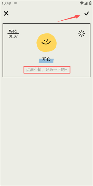3、在心情记录页面填写内容后,点击右上角的对钩按钮完成心情记录。