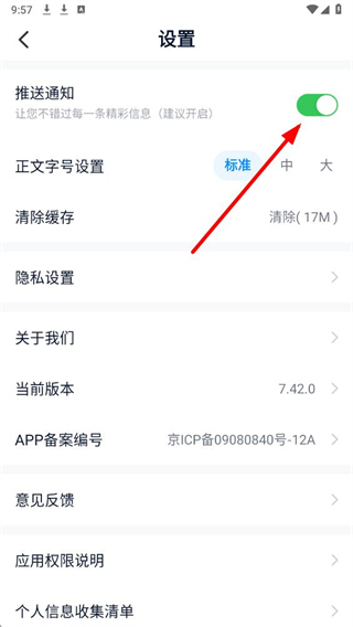 3、在设置页面中,点击推送通知的开关按钮,将其切换为关闭状态,即可停止接收卡车之家的推送通知。