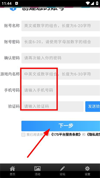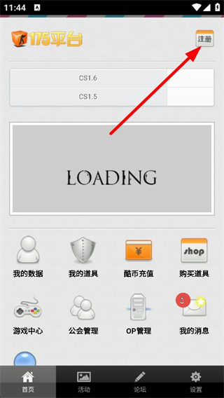 1、打开175平台应用,点击右上角的注册按钮,进入创建页面。