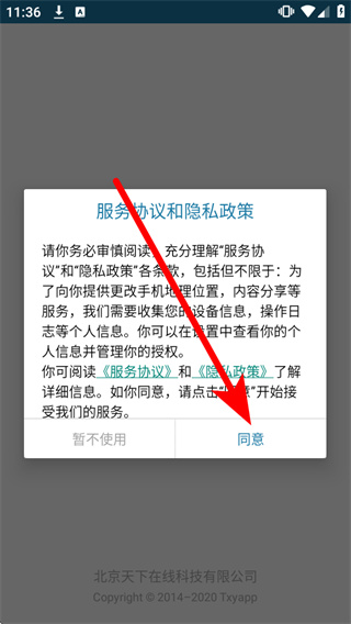 1、打开天下游,弹出弹窗后,点击同意,进入主界面。