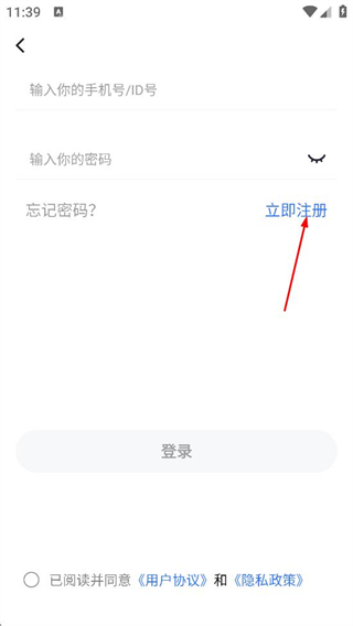 3、在登录页面,点击立即注册的选项,进入注册账号的页面。
