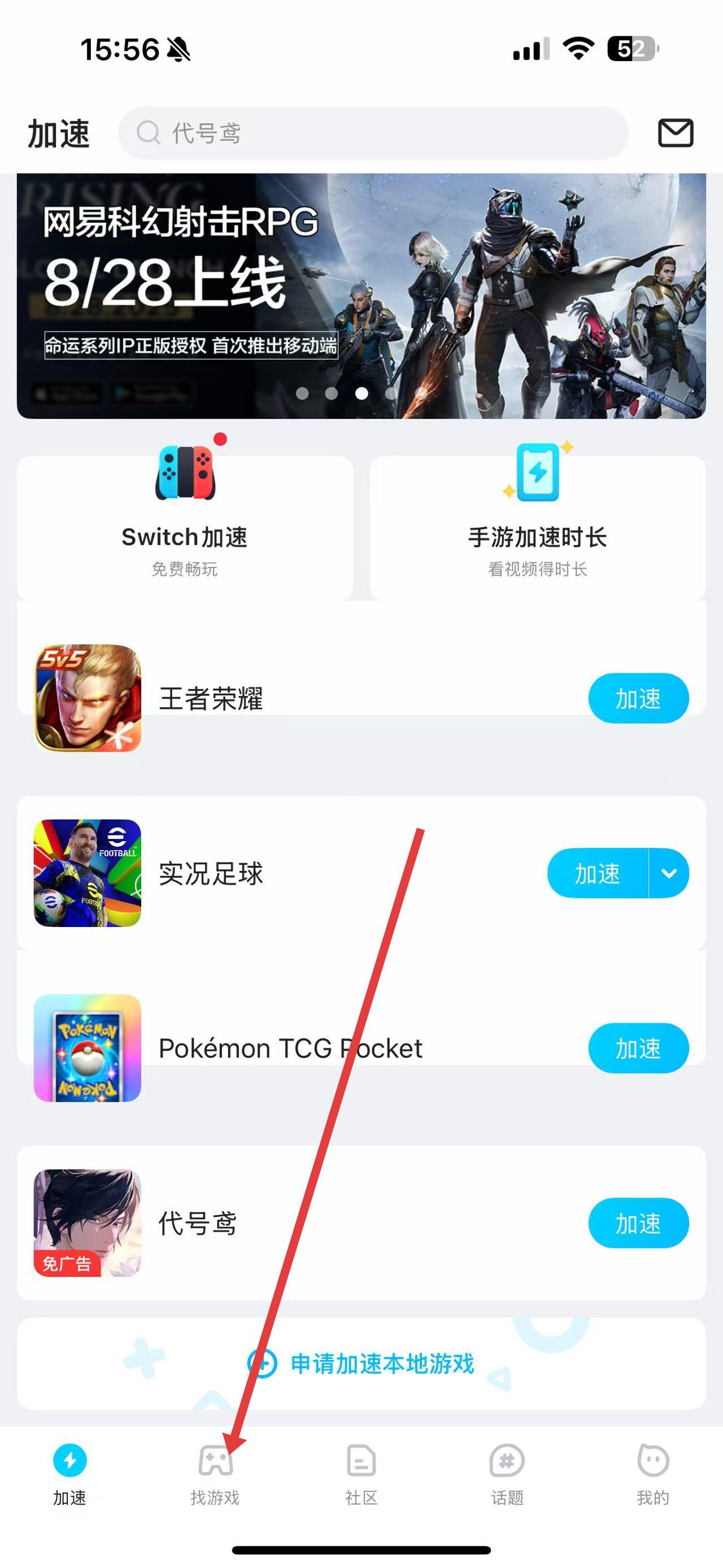 2、在游戏库找想加速的游戏,点右侧加速启动加速。
