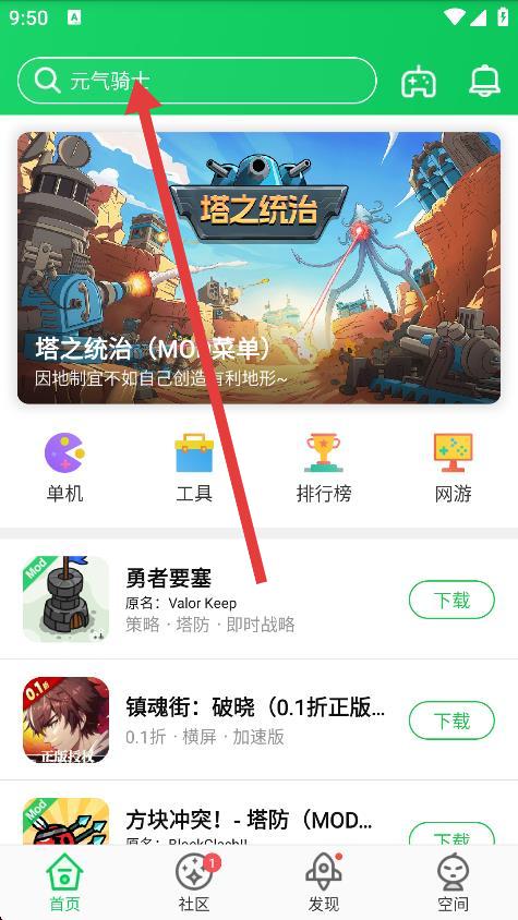 1、打开葫芦侠3楼,点击首页顶部的搜索框,进入搜索页面。