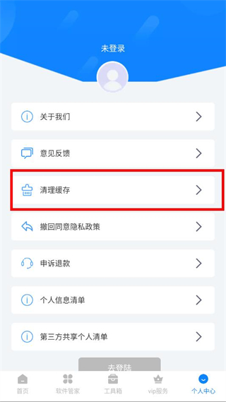 2、在个人中心界面中,找到清理缓存选项,点击触发缓存清理的操作流程。