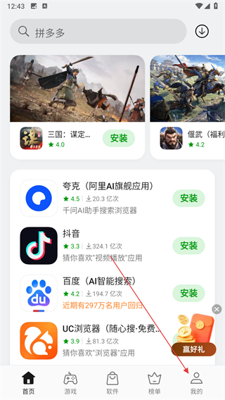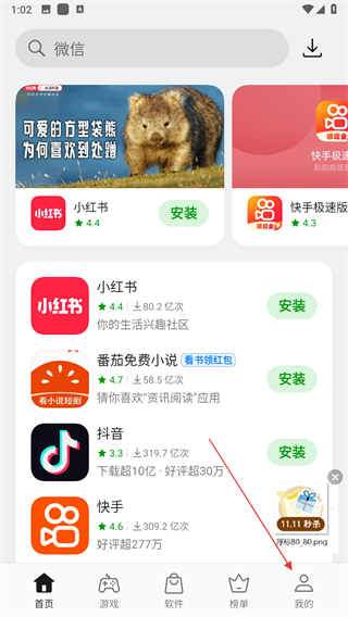 1、启动oppo应用商店,进入时点击底部我的按钮。