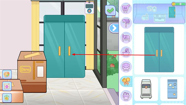 4、继续在右侧栏选择柜子类家具,将其放置到室内合适的位置完成布置。