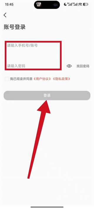 3、在账号登录页面输入账号密码,勾选协议后,点击登录,即可完成账号登录操作。