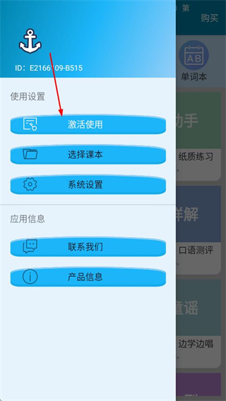 1、进入剑桥英语同步学后,点击左上角的菜单按钮,可展开功能菜单。