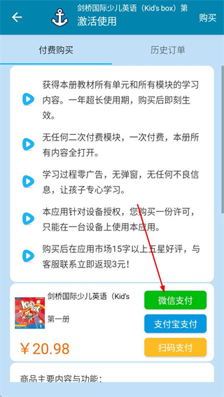 3、在激活使用页面,选择对应支付方式即可完成教材内容的购买。