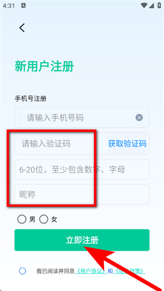 2、在登录页面,点击立即注册选项,进入新用户注册页面。