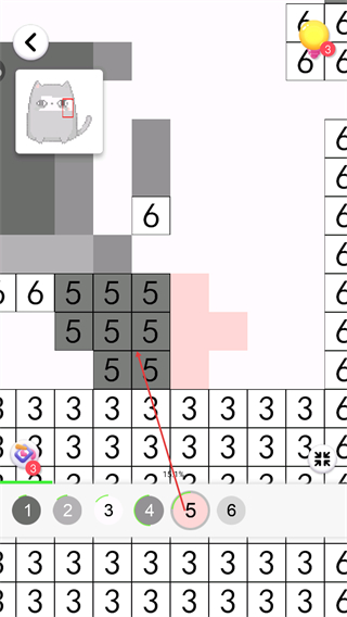 2、选择下方数字3,为图中数字3的区域填色,推进图案成型。