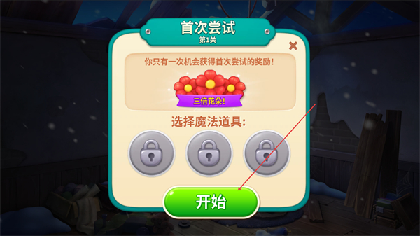 1、点击开始进入关卡,获取首次尝试的三朵花奖励。