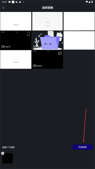 3、选择要提取的视频后,再点击开始转换即可。