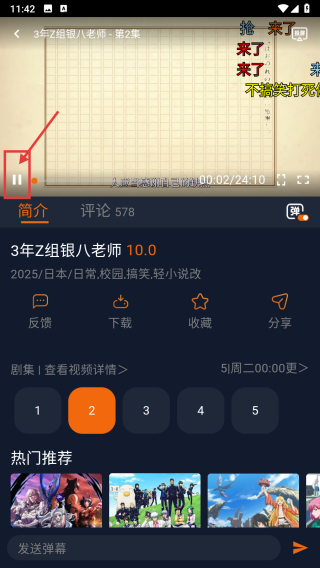 3、在动漫详情页面,点击2集选项,进入播放页面。