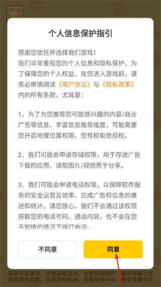 1、阅读弹出的个人信息保护指引内容,点击界面中的同意按钮继续操作。