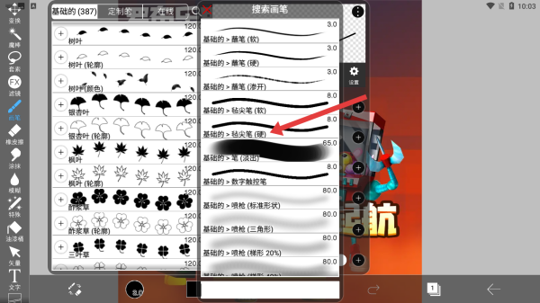 2、进入笔刷设置界面,点击顶部搜索框,输入关键词,快速筛选出目标笔刷,便捷查找所需样式。