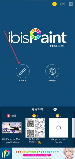 在ibisPaint界面左侧工具栏,点击画笔图标,可调出画笔设置面板,调整笔刷参数或切换绘制工具,辅助创作。